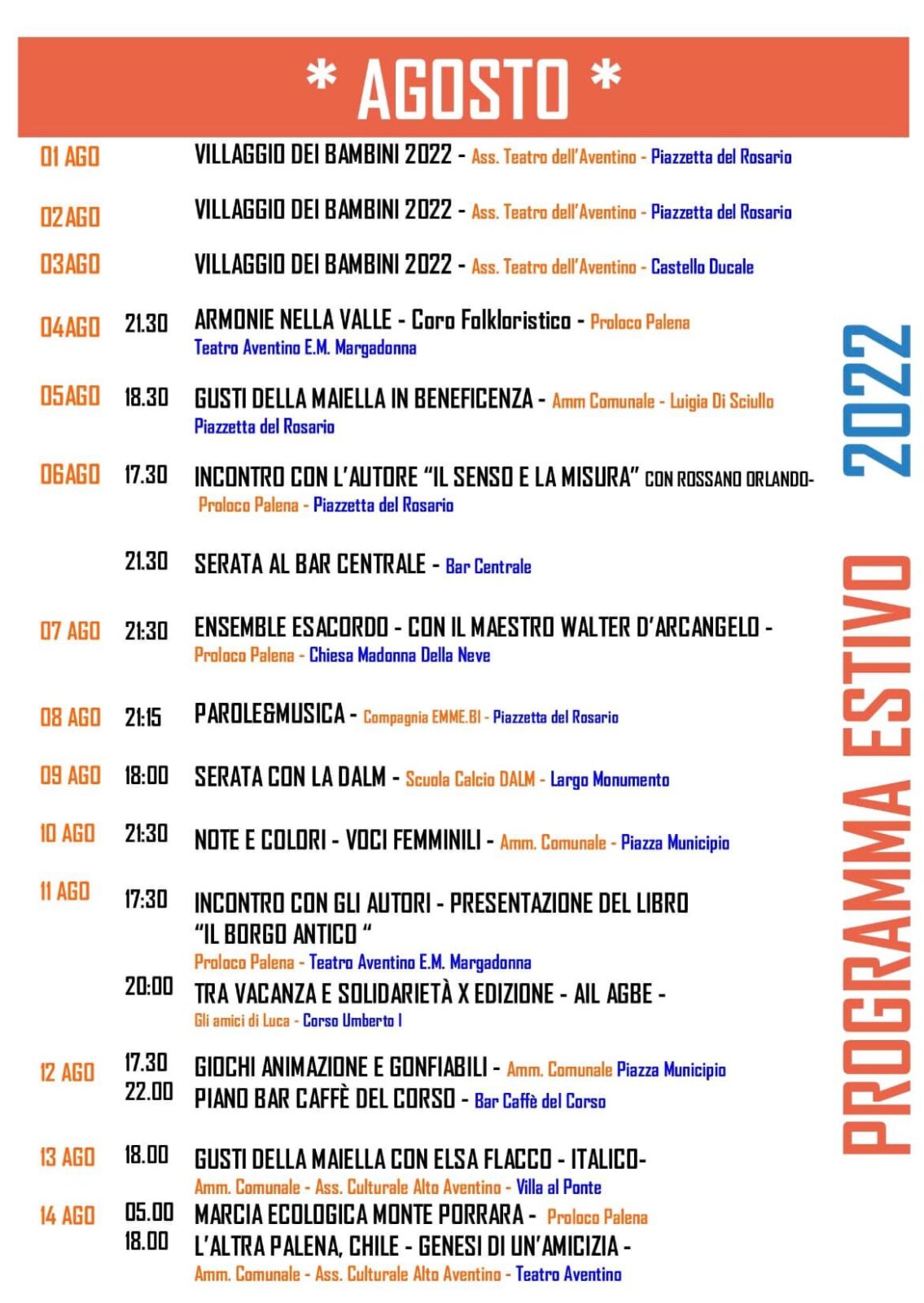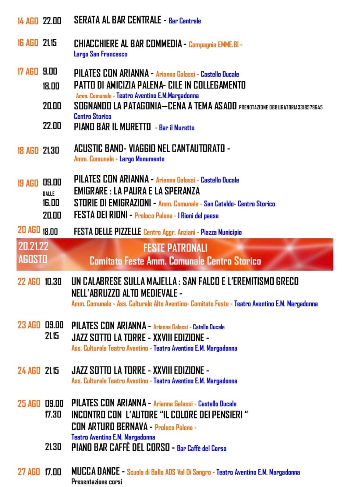 Le foto del programma degli eventi estivi a Palena sono tratte dalla pagina facebook del Comune di Palena