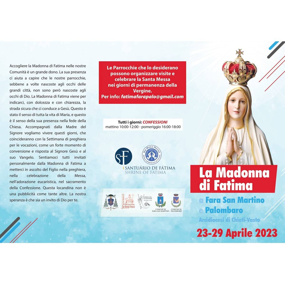 Esposizione della Madonna di Fatima a Fara San Martino e Palombaro dal 23 al 29 aprile 2023